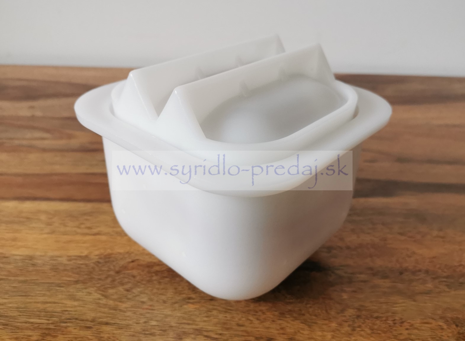 Syrárska forma s vrchnákom Štvorcová na výrobu polotvrdých, tvrdých, dohrievaných a lisovaných syrov. .