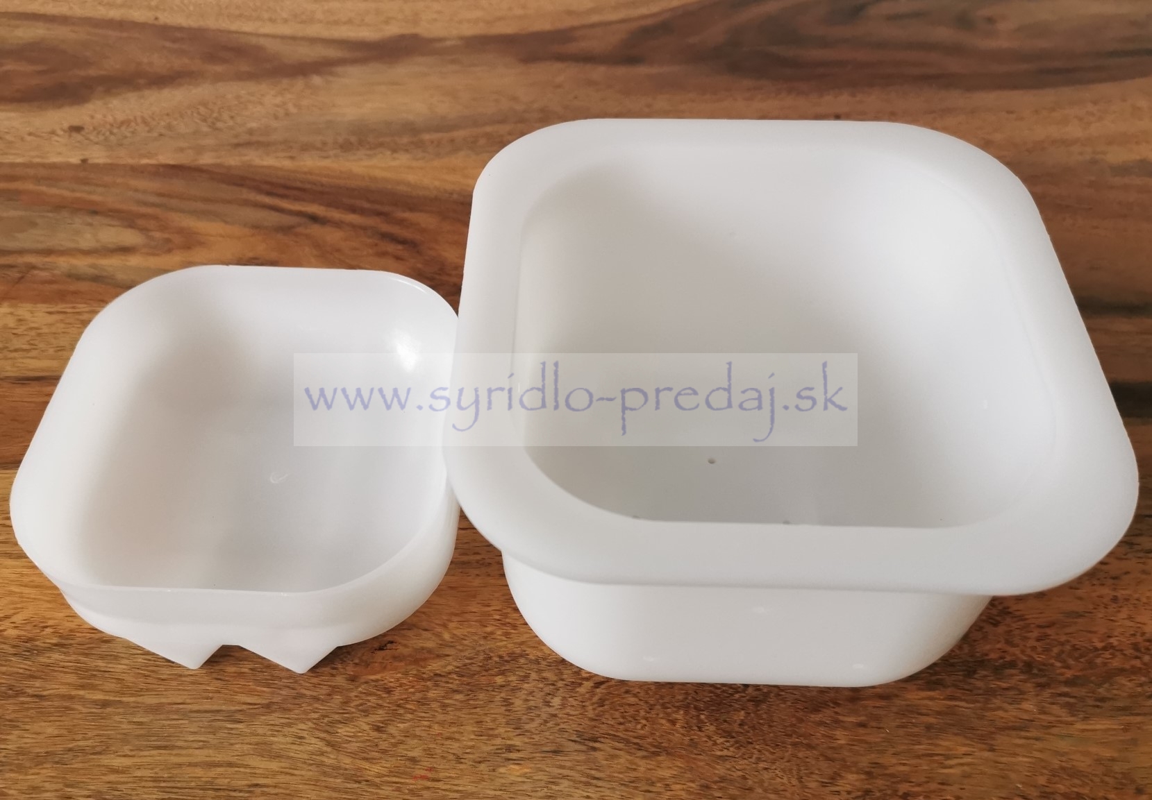 Forma má vnútornú šírku 130 mm, výška 105 mm, po obvode s otvormi pre odtekanie srvátky. Pomocou formy vylisujeme syr o hmotnosti 1000 g, v závislosti na množstve syreniny. Forma a veko sú vyrobené z plastu, ktorý bol schválený pre priamy styk s potravinami. Formy čistíme štetcom alebo ponorením, teplota čistiaceho prostriedku by nemala presiahnuť 80 ° C