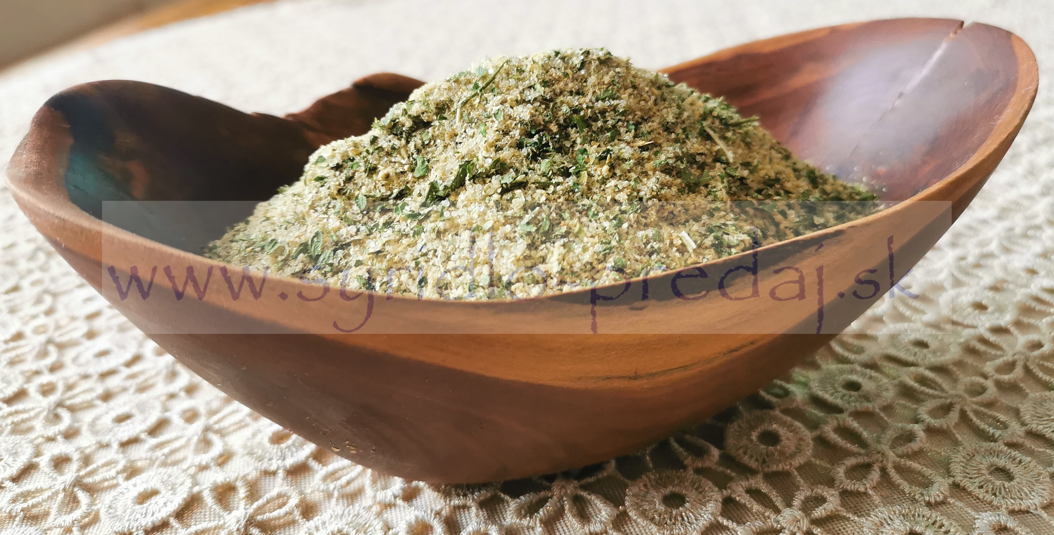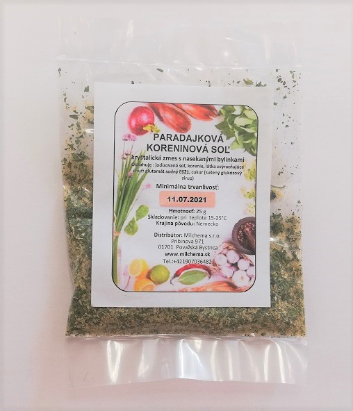 Zloženie: jodizovaná soľ, korenie, látka zvýrazňujúca chuť: glutamát sodný E621, cukor (sušený glukózový sirup)