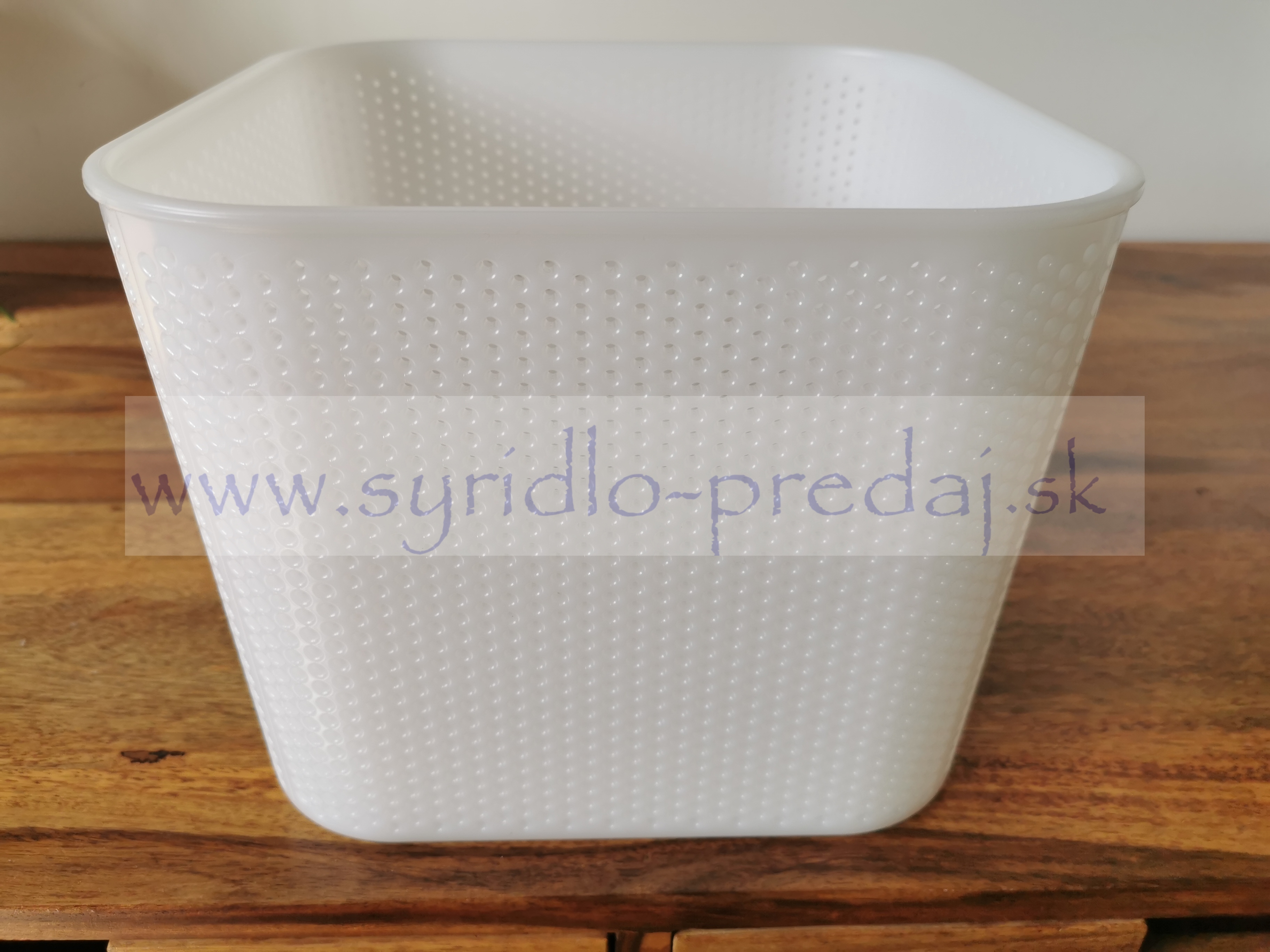 Určená na syr z 15-tich, ale napríklad aj zo 40-tich litrov mlieka - záleží od postupu, ktorý si zvolíte (či mäkší alebo tvrdší syr, nízky syr, alebo poriadny blok syra).